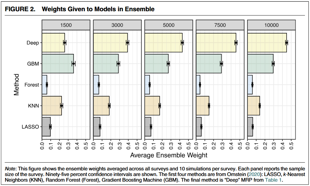Ao invés de usar os modelos de MRP especificados por si só, Goplerud (2023) os combina a várias técnicas de machine learning em um ensemble.