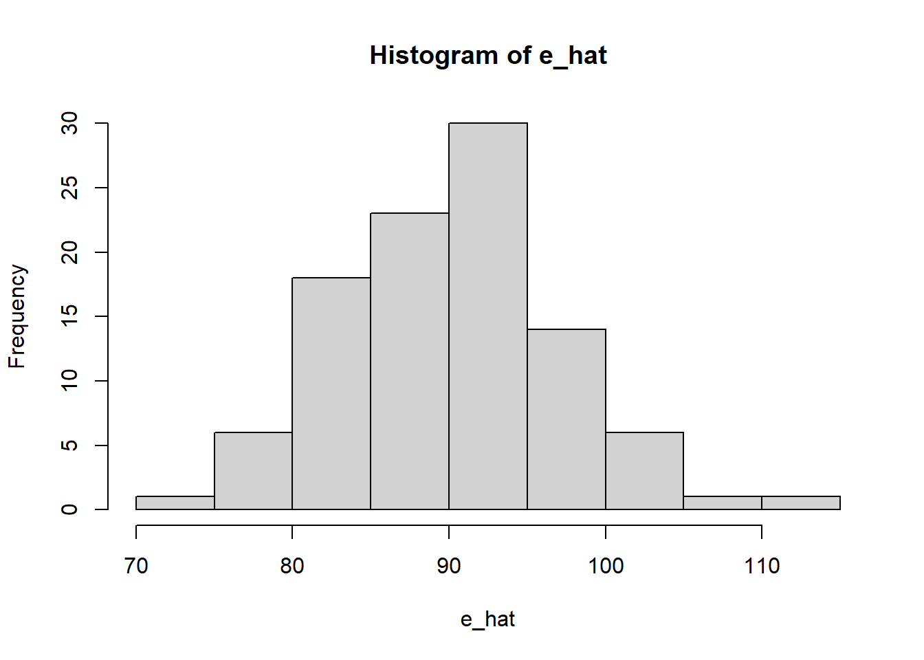 Ora, essa fórmula é novamente a soma de duas constantes, sendo uma delas multiplicada por uma variável. Portanto, se assumimos que \(\epsilon\) tem distribuição normal, então temos garantia, mesmo na amostra pequena, que a distribuição de \(\hat{\beta}\) será normal.